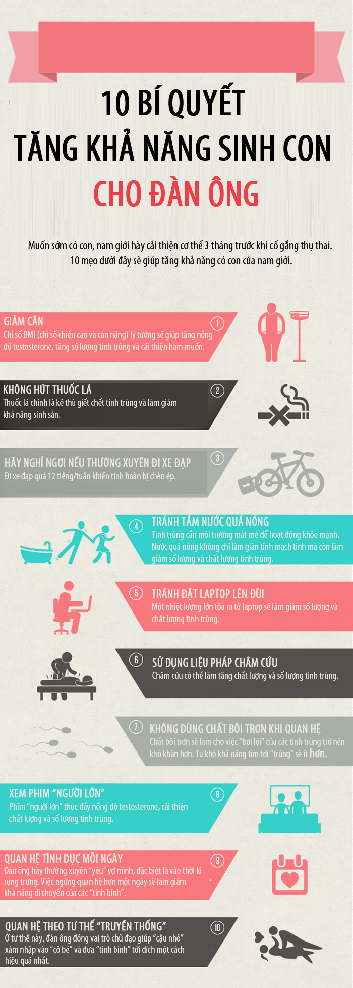 Dưới đây chúng tôi sẽ giới thiệu 10 bí kíp trong vòng 3 tháng để nam giới cải thiện sức khỏe và có cơ thể xung mãn nhất trước khi cố gắng thụ thai.