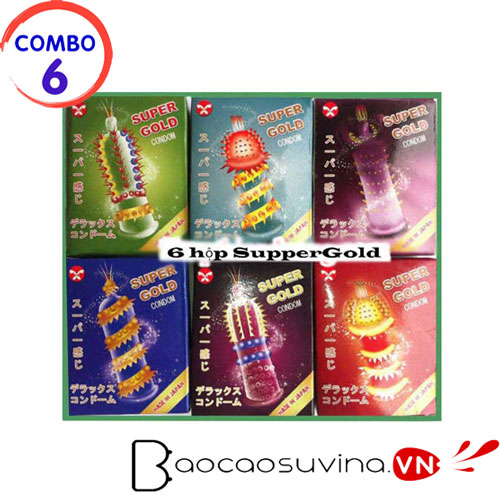 - Bao cao su Super Gold có gai đặc biệt, có 6 vòng gai khủng mềm mại chạy dọc ôm phần đầu bao cao su và 1 vòng gai xoắn ốc bên trong vô cùng kích thích.