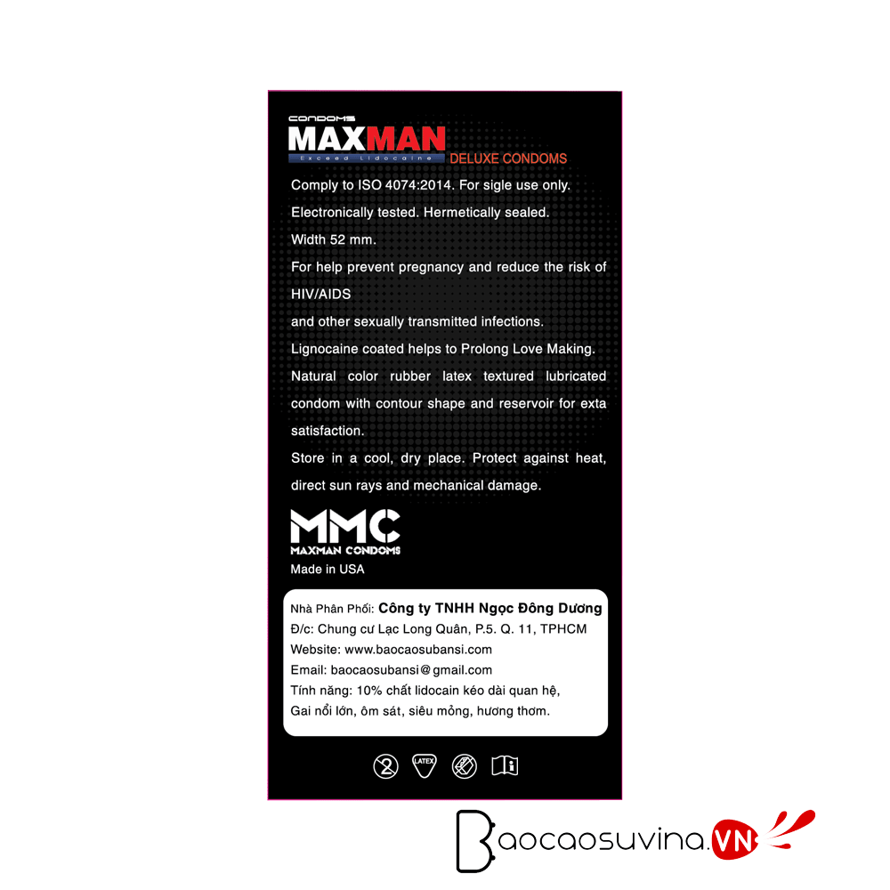 Siêu Gai: 500 Hạt siêu gai là điểm thuyết phục phái nữ thích các bạn Nam sử dụng bao cao su MaxMan 5 in 1, đóng vai trò như hạt Massege liti, mềm mại đem lại cảm giác êm ái và không sợ làm tổn thương " Cô bé ".