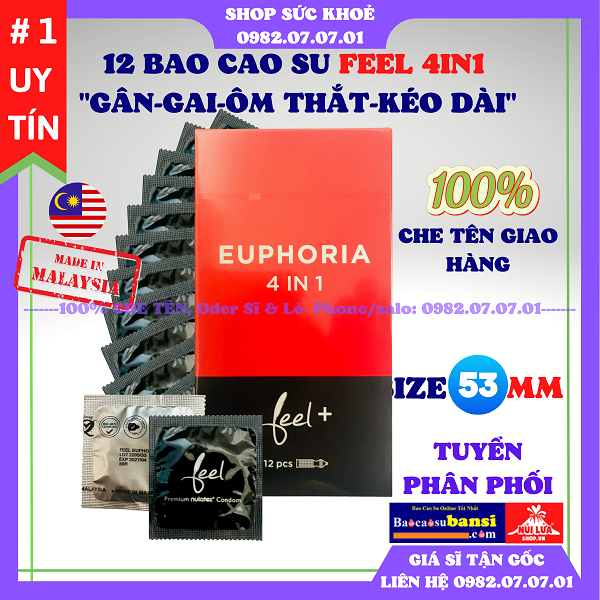 BAO CAO SU FEEL 4 IN 1 là loại bao được sản xuất tại Malaysia, thủ phủ của các nhà máy sản xuất bao cao su tại Đông Nam Á, với quy trình hiện đại của nhà máy Nulatex sản phẩm ra đời hội tụ nhiều tính năng phù hợp với nhu cầu quan hệ ngày một cao trong đời sống.