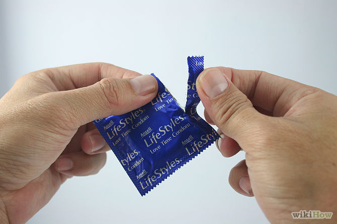 Bước 1: Mở giấy gói bao cao su bằng cách sử dụng các cạnh viền răng cưa. Đây là các cạnh zig-zag ở hai bên bao bọc, được thiết kế để xé một cách nhanh chóng và dễ dàng. Không sử dụng kéo, răng, dao phay, hoặc bất kỳ dụng cụ sắc nhọn khác để mở bao bao cao su, bạn có thể làm rách bao cao su, tồi tệ hơn nếu đó là chiếc bao cao su cuối cùng bạn có.