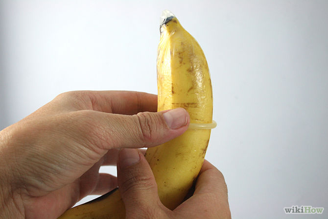 Bước 5: Cuốn bao cao su vào theo chiều dài dương vật. Bao cao su dễ dàng cuộn xuống theo chiều dài của trục. Dương vật đã cương cứng cũng có thể sản xuất ra chất lỏng trước khi xuất tinh, có thể chứa tinh trùng. Nếu bao cao su đã được tiếp xúc với chất lỏng này thì hãy bỏ nó đi và sử dụng cái khác.